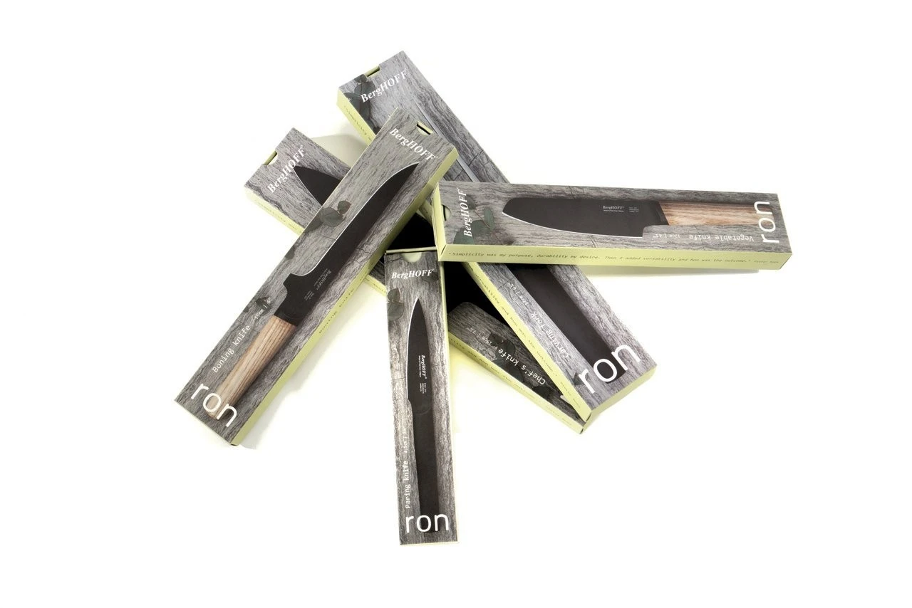 The whole variety of kitchen knives and utensils from the Ron Ash Wood titan series were designed and created with innovative features so that you can have a delightful experience while cooking your foods. In fact, these products are among the most beautiful and efficient kitchen tools ever made by BergHOFF. Indeed, all the knives from the Ron Titan Ash Wood series are easily distinguished by their elegant ash wood handle combined with a sharp blade coated with titanium in black colour.