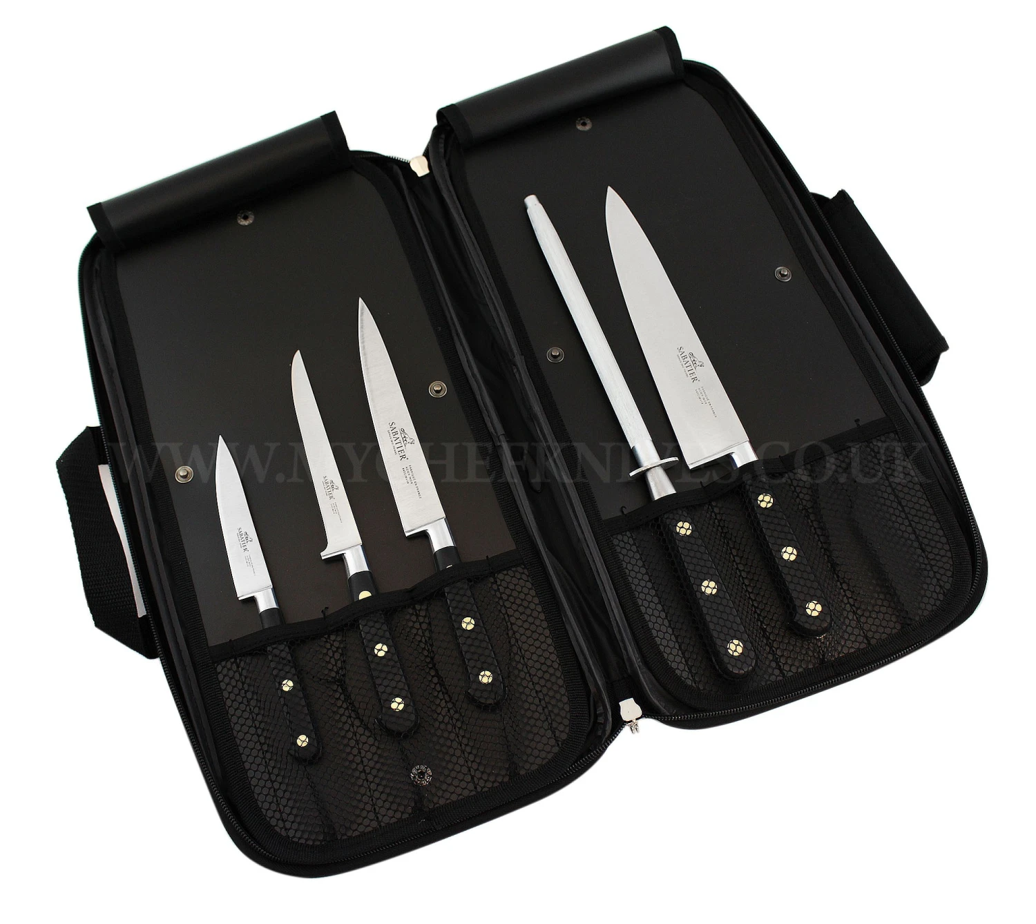 Last but not least, we cannot forget to talk about the item in which all these knives are included: the bag itself! This convenient kitchen knife bag is made of flexible nylon in black colour. It has 2 removable compartments where you can store up to 6 kitchen knives and tools (3 on each compartment). For the storage and the transport of your knives, this bag is the ideal accessory!