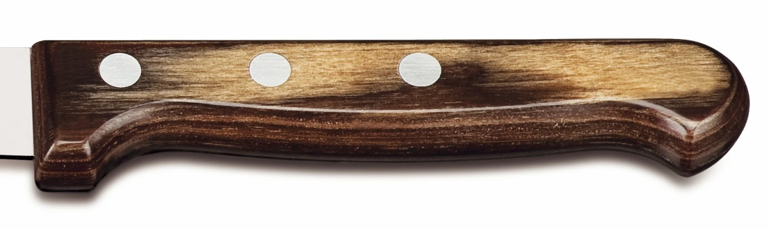 One of the most notorious features of these knives is their handles made of brown polywood. This material enables the handles to have an elegant, rustic design that looks good in any dining table. In addition, they have three aluminum rivets that give the handle great stability and robustness.